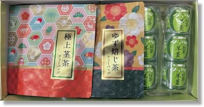お手軽ギフト・和【極上茎茶ティーバッグ・ゆず焙じ茶ティーバッグ・お茶羊羹】
